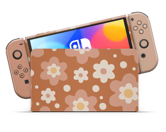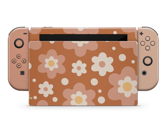 Retro 80s Floral Beige Nintendo Switch OLED Skin
